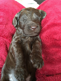 Treasure and Firefighter honeymooned back in October and have produced a beautiful litter of chocolates just in time for the holidays. They will be ready to go home by Valentines. Let us know if you want to get on the list for one of these beauties!!